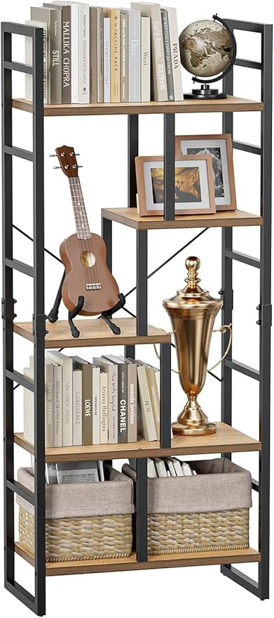 オープンラック5段 木目×アイアンフレーム 幅約60cm