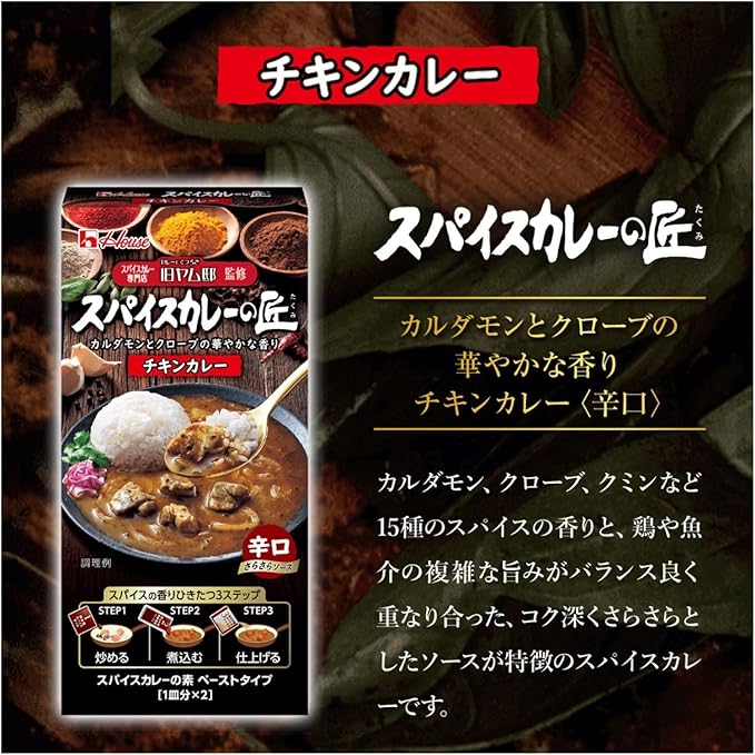 -31%【1,368円 (342円/個)】[PR]House スパイスカリーの匠 チキン 73.2g(2皿分)×4個 スパイスオイル&ペーストセット・15種以上のスパイス使用・プロ監修スープカレーの素 ハウス食品