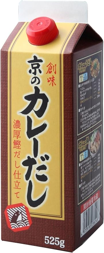 鰹節からとった一番だしをベースにカレー粉を加えた調味だしです。525gの希釈タイプで、お湯で薄めるだけで家庭で簡単に汁物系の京風カレーうどんやカレーそばを作れます。だしの旨みがしっかりしており、うどん・鍋・丼・炒め物などに使えて万能。100mlあたりの栄養成分はエネルギー162kcal、たんぱく質7.5g、脂質3.0g、炭水化物26.2g、食塩相当量8.4g。原材料には小麦・乳成分・牛肉などアレルギー物質を含むため注意が必要です。