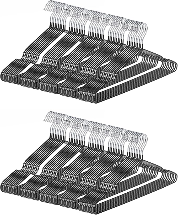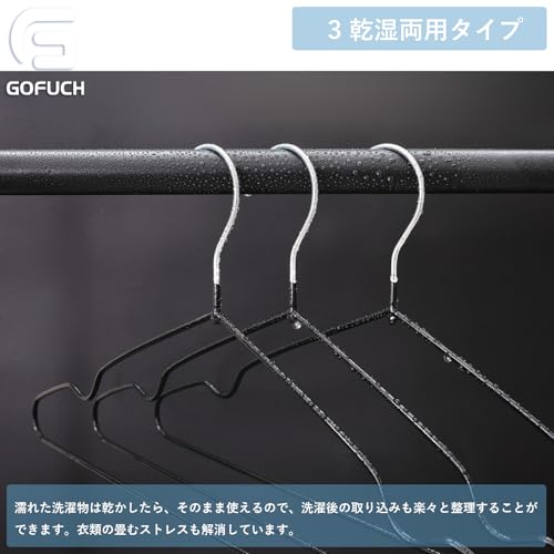 のハンガー100本組は、PVC特殊ラバー加工が施されており、Tシャツやスリップドレス、キャミソールなど滑りやすい衣類でも落ちにくく安心です。スリムで軽量な構造なので、多くの服をクローゼットにかけても幅を取らず、収納力がアップ。乾いた衣類だけでなく濡れたものやランドリーでの使用にも耐える乾湿両用設計で、浴室近くの収納や外干しにも適しています。形状は肩が鋭角でないため、型崩れや肩の跡がつきにくい仕様。ホワイト一色でクローゼット内が明るく統一感を出せます。コストパフォーマンス重視でハンガーを大量に揃えたい人にぴったりです。