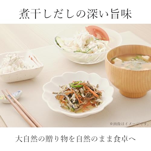 瀬戸内海でとれた煮干を粉末にした出汁素材で、使い勝手が良いことが魅力です。粉状なのでだし取りの手間が省け、味噌汁や煮物にサッと加えるだけで魚介のうまみが広がります。添加物を使っておらず、素材本来の香りとほどよい塩味が特徴。2袋セットでコスパも良く、普段からだしをよく使う家庭に向いています。保存のコツは直射日光を避け、湿気が入らないように密封して保管すること。