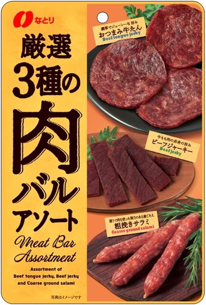 牛タン・ビーフジャーキー・粗挽きサラミの3種を一袋で楽しめ、異なる肉の風味と食感が味わえます。オセアニア産牛もも肉、アメリカ産牛タン、デンマーク産豚などを使用し、肉好きに嬉しい構成。飲み会・キャンプ・おつまみタイムにちょうどいいサイズ(48g/袋 ×5袋入り)で、シェアも◎。