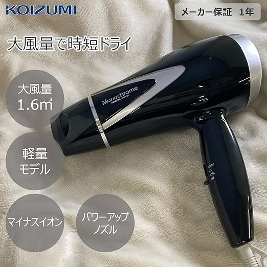 -30%【2,280円】[PR]モノクローム(Monochrome)コイズミ ヘアドライヤー マイナスイオン 軽量タイプ ブラック KHD-9300/BK(Amazon限定)