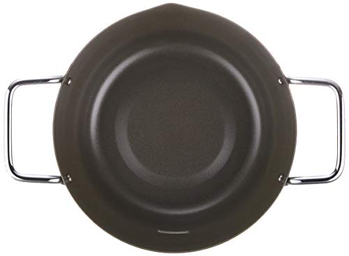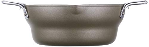 直径20cm(内径約19cm)、容量1.9Lの使いやすいサイズ。段付き形状と深めのフチで油はねを抑え、揚げ網付きで油切りもスムーズ。鉄製本体はシリコーン樹脂塗装で耐久性が高く、取っ手・揚げ網はクロムめっき仕上げ。ガス火はもちろんIH対応のオール熱源仕様で、家庭で少量の揚げ物やお弁当作りにぴったりな天ぷら鍋です。