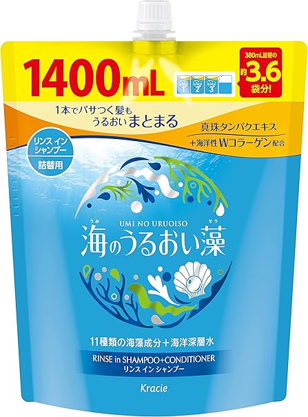 -45%【567円】[通常 709円][PR]海のうるおい藻 うるおいケア リンスインシャンプー 詰め替え用 1400ml ― 海藻エキス配合でしっとりまとまる大容量タイプ