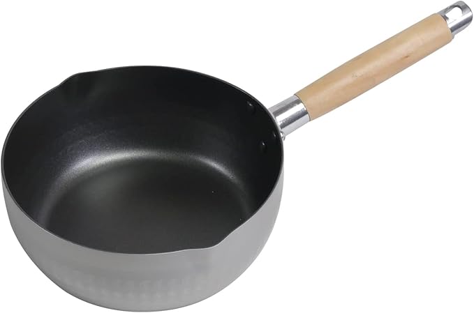軽量なアルミ製で扱いやすく、内面にはフッ素樹脂加工を施しこびりつきにくい仕様。外面はアルマイト加工で耐久性と美しさを両立しています。IHを含むオール熱源対応で、煮物・汁物・下ごしらえに幅広く活躍。両口注ぎ仕様で左利き・右利き問わず便利に使える、日常使いに最適な雪平鍋です。