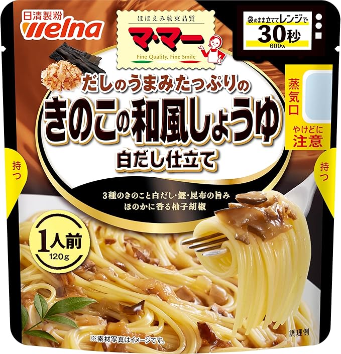 数種類のだしを効かせ、きのこの風味としょうゆの香ばしさを合わせた和風パスタソースです。白だし仕立てであっさりしながらも旨みが濃く、素材の味わいを引き立てます。1人前の小分けタイプで調理も簡単。ゆでたパスタに和えるだけで、本格的な和風パスタが手軽に楽しめ、忙しい日の食事やランチにも便利です。