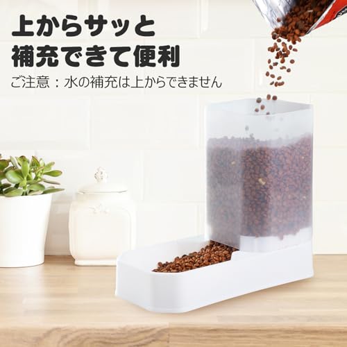 電力不要の重力式で給餌と給水を自動化できる、猫・犬向けの給餌器&給水器のコンビネーションモデルです。フードホッパーは最大1.5kg入り、水容器は3.3L容量で、長時間の外出時や留守中の給餌・給水をしっかりサポート。重力原理で自動補水が可能なため、電源設備がない場所や災害時などでも安心して使用できます。設置やメンテナンスも簡単で、日常のペットケア負担を軽減する実用的なアイテムです。
