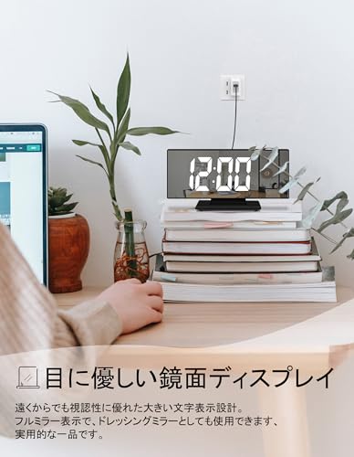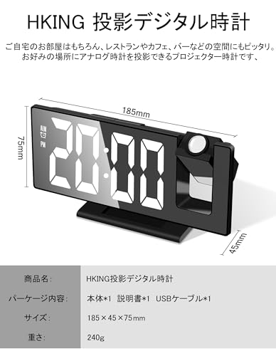 天井・壁に時刻を投影できるプロジェクター機能を備えた多機能モデル。4段階の明るさ設定が可能で、夜間の眩しさを抑える「夜間モード」や、省電力を意識した「節電モード」も搭載されています。スクリーン表示は 12H/24H 表示切替可能で、大画面の LED 表示が視認性に優れ、スヌーズ・アラーム機能も標準装備。USB 給電による運用で、常設型および持ち運び型どちらの用途にも対応。日本語取扱説明書付きで設定も安心です。