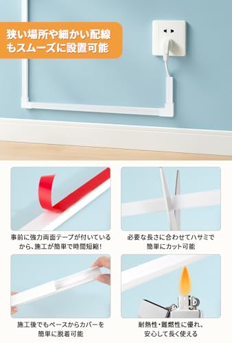 オフィスやリビング、寝室などで目立ちやすいコード類をきれいに隠せる便利アイテムです。幅30cm × 高さ1.5cm × 奥行0.9cm (12本) の薄型設計で、床面や壁面にスッと溶け込むデザイン。両面テープが予め貼付されており、工具不要で簡単に設置できる仕様です。さらに、コーナー用やジョイント用のパーツ22個付きで、直線・曲線・分岐などの配線取り回しにも柔軟に対応可能。カットして長さ調整できるため、部屋のレイアウトやケーブルの配置に合わせてカスタマイズできます。