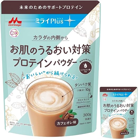 -50%【1,339円】[PR][機能性表示食品] 森永乳業 ミライPlus お肌のうるおい対策 プロテイン パウダー カフェオレ味 ホエイ & ソイプロテインパウダー 300g (15食分) +おまけ1個付き
