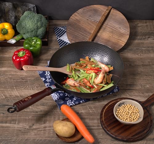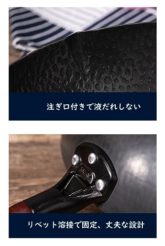 -60%【1,438円】[PR] 鉄鍋 中華鍋 窒化加工 高純度鉄炒め鍋 28cm 木製蓋付き 本格中華 IH対応 ガス火対応 鉄分補給 ハンドルタイプ 熱伝導率が良く