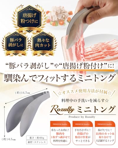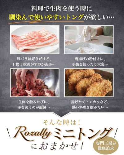 指の延長のように使える極細フォルムで、生肉のつかみ替えからサラダの盛り付け、揚げ物の取り分けまで幅広く対応。ステンレス製で洗いやすく、食洗機にも対応。省スペース設計で引き出し収納にも便利なミニサイズです。