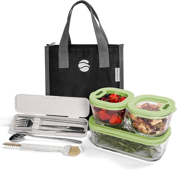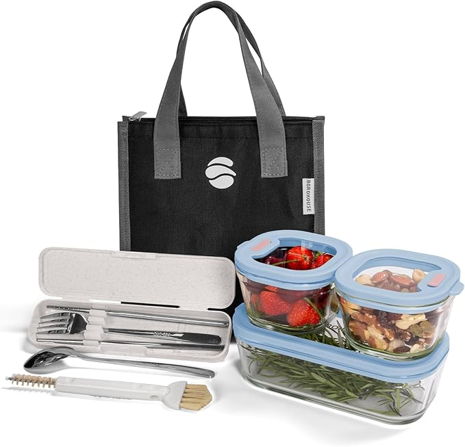 弁当箱セット 耐熱保存容器 (240ml×2、560ml×1)+バッグ+カトラリーセット+清潔ブラシ