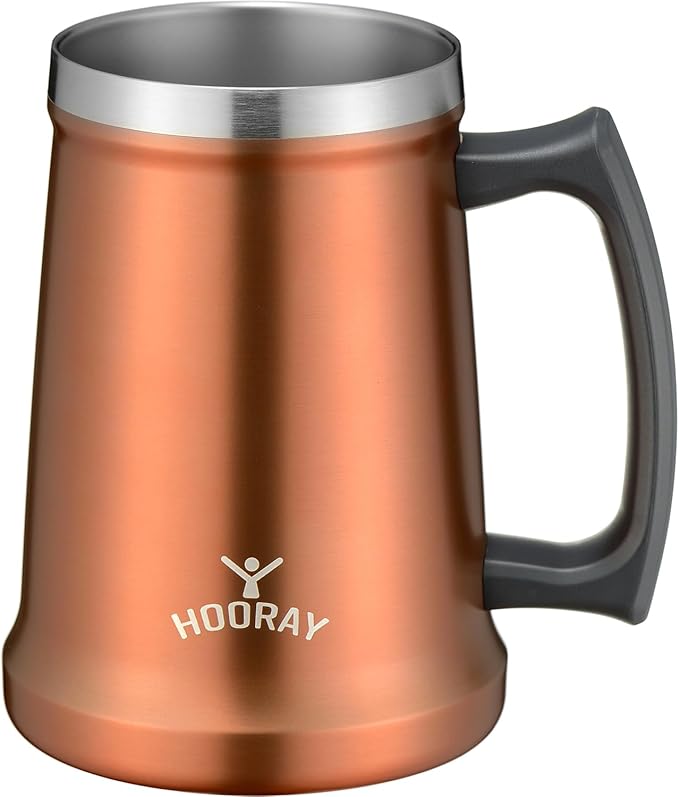 ステンレス鋼の真空断熱構造を採用し、冷たいビールは冷たく、温かい飲み物は温かくキープ。容量約480mlでハンドル付きのジョッキ形状、安定感あるフォルムで居酒屋仕様の雰囲気も演出。コッパーカラーが食卓をぐっと引き締め、重量約270gと軽量で日常使いにもぴったりです。