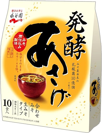 「永谷園 発酵あさげ 10食入」は、同社のロングセラーブランド「あさげ」を基に、“発酵”に着目して開発された即席みそ汁。「生みそタイプ」と「フリーズドライみそ」の両方を使った“みそ両仕込み製法”により、塩分を変えずに味噌使用量1.48倍を実現し、コク深い味わいに仕上げています。さらに、1杯あたり「たんぱく質3.6g+みそ蔵由来の乳酸菌10億個」を配合。厚切りの板麩がしっかり味噌汁を吸い込む構造で、素材そのものの旨みを楽しめる仕様。