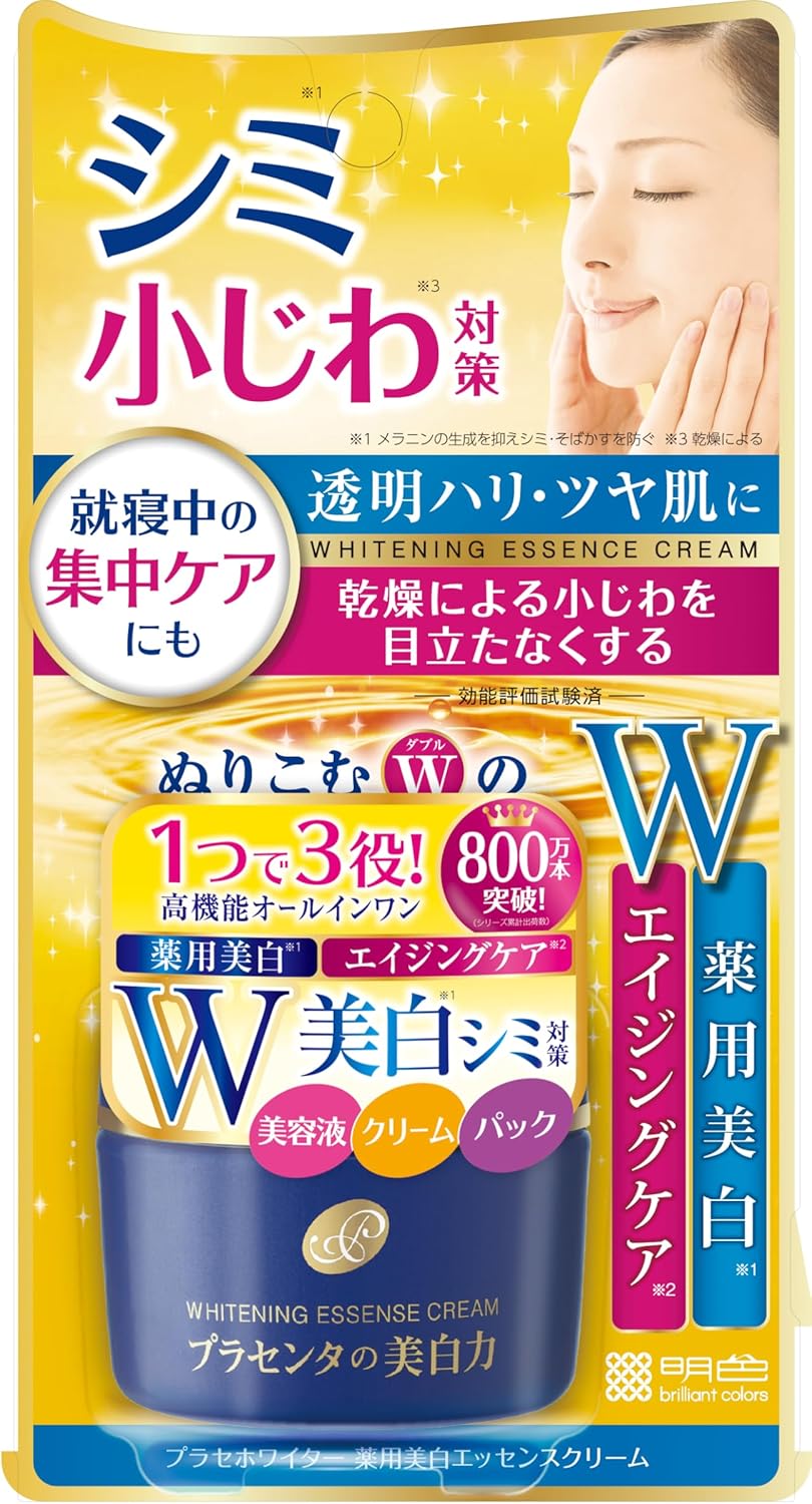 100%国産プラセンタを配合し、メラニンの生成を抑えてシミ・そばかすを防ぎ、さらに乾燥による小じわを目立たなくする効能評価済み処方です。ホワイトフローラルの香り付きで、エイジングケアや肌の透明感・ハリを求める方におすすめ。55g入りの顔全体用クリームで、日々の集中ケアに適した一品です。