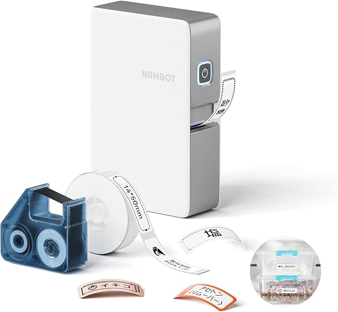 NIIMBOT B18は、スマホアプリ連携に対応した熱転写式ラベルプリンター。感熱タイプよりも印字が長持ちし、水・油・摩擦に強いのが特徴です。203dpiの高解像度で、文字・QRコード・アイコン印刷も鮮明。USB-C充電式のコンパクト設計で持ち運びも簡単。カラー対応ラベルやケーブル・収納用など多用途に使え、日常の整理整頓や業務用ラベル作成にも最適です。