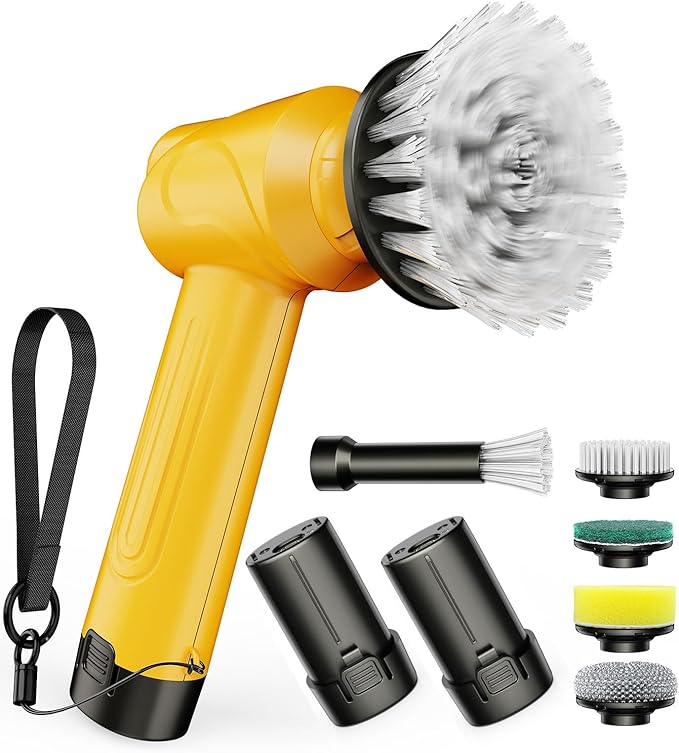 電動お掃除ブラシ 手持ち式 コードレス回転スクラバー 5種類ブラシヘッド付き