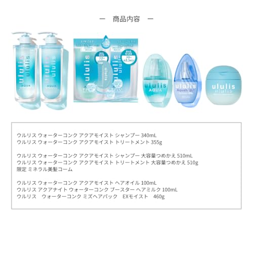 WEB限定の特別仕様で登場するululisブランドのヘアケア8点セット。アクアモイストシリーズを中心に、髪のうるおいを長時間キープする設計で、約4ヶ月分の集中保湿ケアが可能です。シャンプー・トリートメント・ヘアオイルなどが組み合わされた贅沢な内容で、乾燥やダメージが気になる季節にも最適。うるおい重視の方におすすめの限定福袋です。