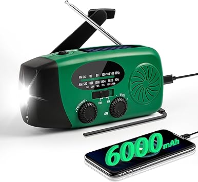 6000mAhのバッテリーを搭載し、スマホなどのUSB機器への非常充電も可能。ソーラー充電・手回し充電・USB充電の三方式で、停電時・災害時にも頼れる設計。LEDライト・SOSアラート機能付きで夜間・緊急時の視認性・発信性も確保。AM/FM受信可能で最新の災害情報を入手しやすく、IPX3の防水仕様も備えて浴室・屋外環境でも安心。日本語説明書付きで、家族の防災備えとして1台あると安心なアイテムです。