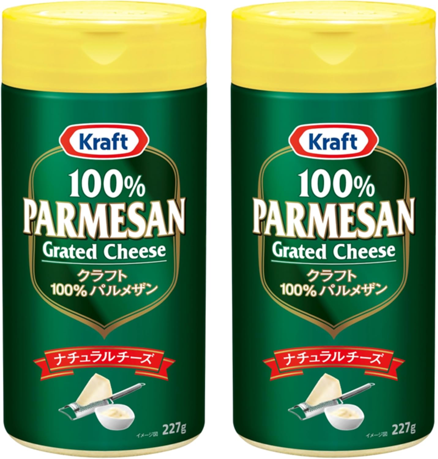 Kraftの100%パルメザンチーズが227g×2個入りの大容量パックで登場。賞味期限は2026年1月2日までの訳あり特価品。濃厚なうまみと香ばしさが特徴で、パスタやサラダ、グラタンなど幅広い料理に活躍します。保存性が高く、家庭用や業務用にもおすすめのナチュラルチーズ粉末です。