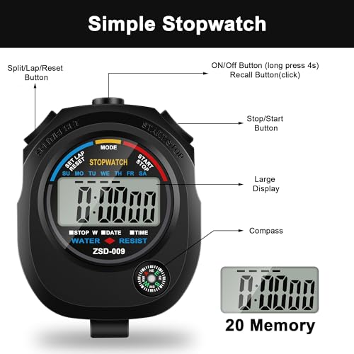 【85円】[PR] 多機能電子デジタル スポーツストップウォッチタイマー 大型ディスプレイ 日付・時刻・アラーム機能付き 1個セット