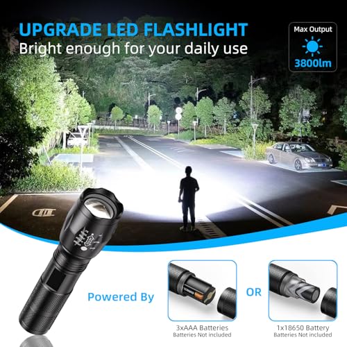 3000ルーメン出力の高性能LED懐中電灯が2個セット。ミリタリーグレードの堅牢設計、防水仕様、5つの照射モード(ハイ/ミドル/ロー/ストロボ/SOS)を備え、キャンプ・バイクライド・ハイキング・夜間ウォーキング・非常時など幅広く活用可能です。電池は付属していないため、別途準備が必要です。