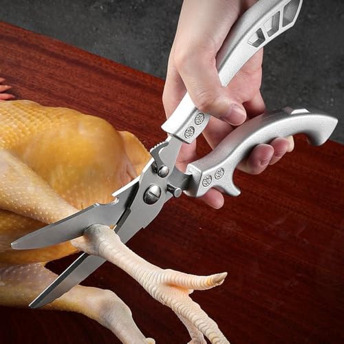 ステンレススチール製の丈夫なキッチンはさみで、肉・骨・鶏肉・七面鳥・魚・野菜など幅広い食材のカットに対応。プロ仕様の刃設計で切れ味が良く、滑りにくいグリップが調理中の扱いやすさを高めます。分解不要で手軽に使える仕様。毎日の料理の効率化に役立つ万能タイプです。