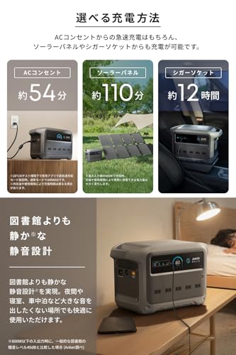1024Whの大容量と1550W出力で、冷蔵庫や電子レンジなどの家電をしっかり稼働できるポータブル電源と、100Wソーラーパネルのセット。わずか約54分で本体80%まで急速充電でき、昼間は太陽光で再充電できるため停電時のバックアップに最適。軽量で持ち運びやすく、アウトドアや車中泊でも活躍します。ソーラー併用で電源確保の安心感が大幅にアップします。