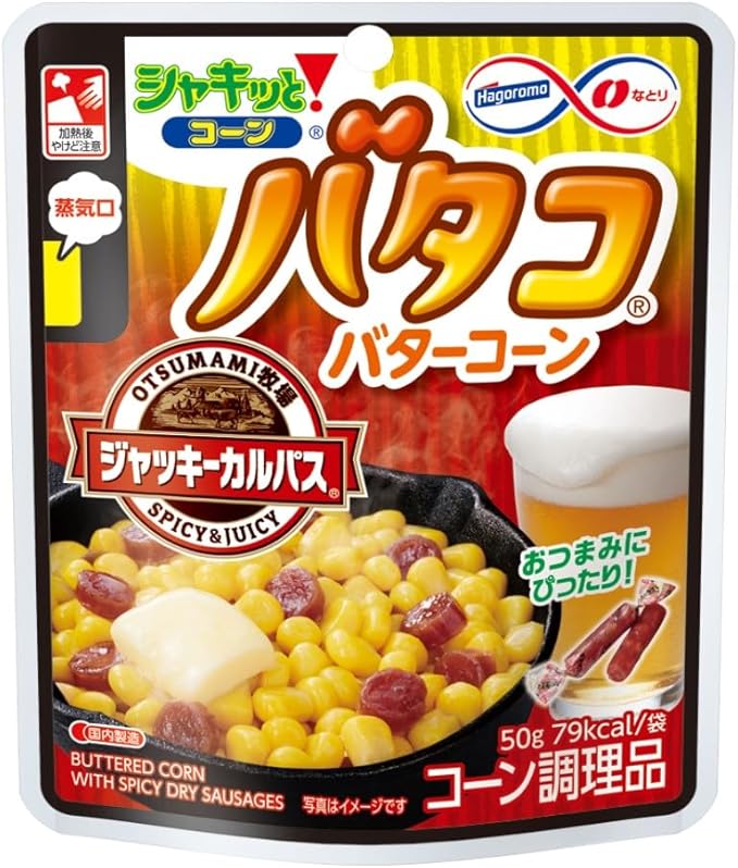 コーンスナックの軽やかな食感と、バター風味のコーン(バタコ)にジャッキーカルパス(スモーク風味のミニソーセージ風乾燥肉)がアクセントになったユニークなスナックです。50gの個包装タイプを15個まとめたセットで、おやつやおつまみ、行楽のお供として使いやすい仕様。コーンの甘みとカルパスの風味が組み合わさることで、複層的な味わいが楽しめます。