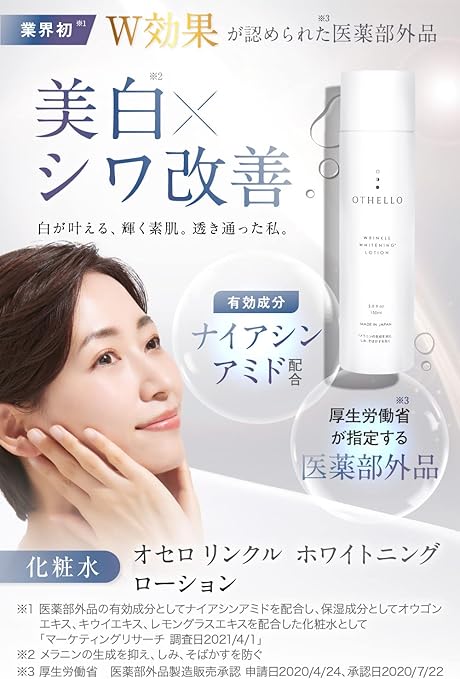 (オセロ)OTHELLOシリーズは、ナイアシンアミドを配合した医薬部外品のスキンケアライン。化粧水・乳液・クリームは、うるおいを与えながら肌をなめらかに整え、乾燥によるくすみや荒れを防ぐケアに役立ちます。日焼け止めはSPF50+・PA++++で、日常の紫外線対策と化粧下地としての使いやすさが特徴。毎日のベーシックスキンケアからUV対策まで、ライン使いで肌をすこやかに保ちたい方に向いたシリーズです。
