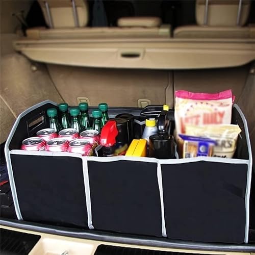 折りたたみ可能で使わないときはコンパクトにたためる車用収納ボックス。3つのコンパートメント付きで、買い物袋・工具・緊急グッズなどをまとめて整理でき、SUV・トラック・バンなど幅広い車種に対応。防水仕様のため濡れたものを入れても安心で、車内やトランク内の荷物整理・荷崩れ防止に便利なアイテムです。
