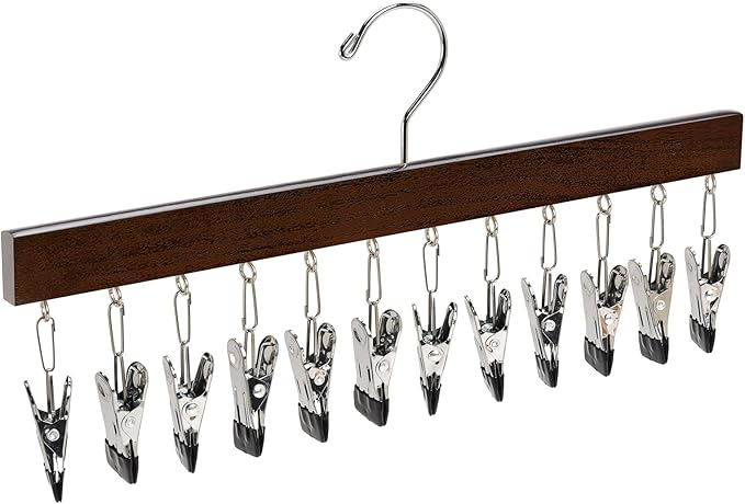 2本セット。木製グリップと滑り止め付きクリップ(10個)で、下着や帽子、タオルなどの小物を型崩れせずに掛けられるハンガー。360度回転式スチールフックで使いやすく、錆びにくい仕様なのでクローゼットや洗面所など長く使いたい場所にも安心。省スペースで整理整頓しやすく、衣類をきれいに収納したい人や、タオル・小物の収納をスマートにしたい人におすすめです。