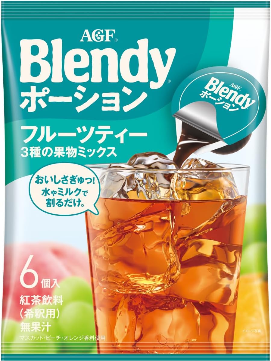 水や炭酸水、ミルクに入れるだけで、3種の果物が香る爽やかなフルーツティーが楽しめるブレンディの濃縮ポーション。マンゴー、ピーチ、パッションフルーツの華やかな香りが広がり、冷たいドリンクにもホットにも使える万能タイプです。6個入り袋が12袋セットで、ストックしやすく家族でのシェアにも便利。おうち時間のリフレッシュや、おもてなし飲料としても活躍します。