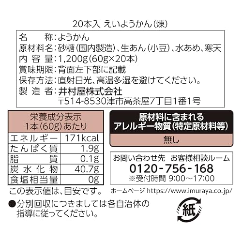 井村屋 えいようかん 60g×20本(合計1200g)