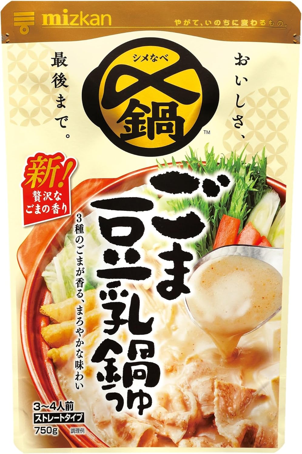 ミツカンの「〆まで美味しい ごま豆乳鍋つゆ」は、コクのあるごまとまろやかな豆乳を合わせたストレートタイプの鍋つゆ。野菜や肉の旨みを引き立て、煮込むほどに味わいが深まります。〆にはうどんやご飯を加えても楽しめる設計で、最後まで飽きにくいのが特長。750g×4袋入りで家族での鍋料理やまとめ買いにも便利です。