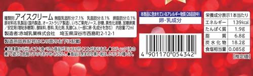 いちごの風味とミルクの濃厚さを楽しめる冷凍アイスバー。1本72mlの食べきりサイズで、子供から大人まで幅広く楽しめる味わいです。24本入りのセットは家族やパーティー用のストックにも便利で、暑い季節はもちろん、甘いものが恋しい時にも手軽に取り入れられるアイスです。