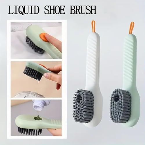 【312円】[PR] 液体ホルダー付きシューズブラシ 多機能 プレス式 ロングハンドル