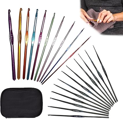 滑らかで軽量なかぎ針編みフック22本のセット。色分けされたマルチカラー編み針は、糸のすべりが良く、長時間の編み作業でも手が疲れにくい設計です。かぎ針編み初心者から上級者まで幅広く使えるキットで、セーターや小物、アクセサリーなどのハンドメイド制作に最適。持ち運びやすく、手芸好きの必携アイテムです。