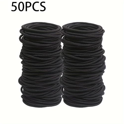 太い髪や巻き毛でもしっかりまとめられる太めタイプのポニーテールホルダー50個セット。4mm幅のヘアゴムバンドは伸縮性に優れ、男女兼用で使えるシンプルなデザインです。毎日のヘアアレンジや予備ストック、友人へのギフトにも最適な大容量セットで、使い勝手の良いヘアアクセサリーです。