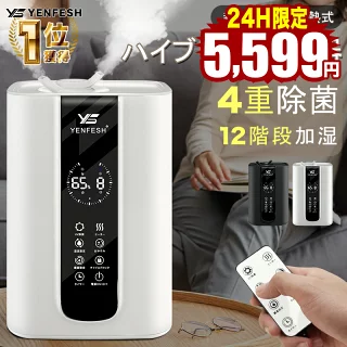 超音波式と加熱式を組み合わせたハイブリッド加湿器。大容量5.5Lタンクで最大約600ml/hの加湿量に対応し、リビングやオフィスなど広めの空間でも使いやすい設計です。アロマ対応で香りを楽しめるほか、UV除菌機能や自動湿度調節、タイマー、チャイルドロック、空焚き防止など機能面も充実。静音設計で就寝時にも使いやすく、上部給水式で日常のお手入れも簡単です。