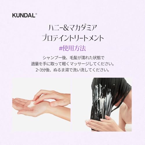 KUNDAL(クンダル)の香水トリートメントは、ハニー&マカダミア由来の保湿成分とプロテインを配合した弱酸性処方。髪にうるおいとまとまりを与えながら、ホワイトムスクの上品で清潔感のある香りがふんわり続きます。毎日のヘアケアに取り入れやすい500mlボトルで、乾燥やパサつきが気になる髪のコンディションを整えたい方にも使いやすい設計です。