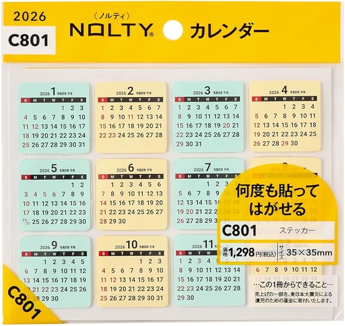 -45%【¥649】能率 NOLTY 2026年 カレンダー ステッカー