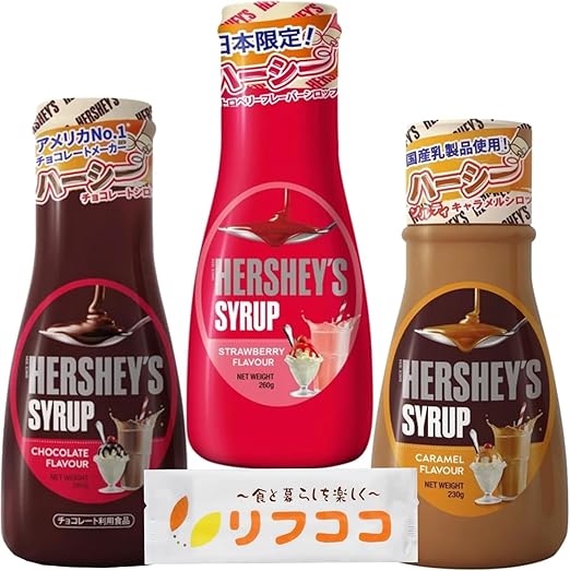 ハーシーの3種アソートシロップは、チョコレート・キャラメル・ストロベリー各1本ずつのセット。デザートやパンケーキ、アイスクリーム、ドリンクなどにかけるだけで、味わい豊かなトッピングが楽しめます。業務用サイズでおしぼり付き、ホームパーティーやカフェ風スイーツにも便利なシロップセットです。