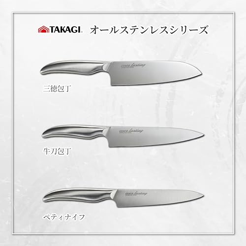 髙儀(Takagi)のオールステンレス三徳包丁は、刃・柄・全体がステンレス素材で耐久性と清潔感に優れた万能タイプの包丁。両刃仕様で右利き・左利きどちらにも使いやすく、食洗機対応でお手入れも簡単。手にフィットするハンドルが操作性を高め、日々の食材の切り分けや調理作業に活躍します。刃は研ぎ直し可能で長く使える1本です。