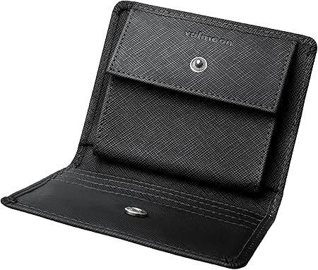 Vulmoon(バルムーン)のコンパクト本革二つ折り財布は、薄型で収納力と携帯性を両立したメンズ向けデザイン。牛革レザーを使用した上品な質感に、ボックス型小銭入れで取り出しやすさも考慮。RFIDスキミング防止機能を搭載し、ギフトBOX入りでプレゼントにも最適です。