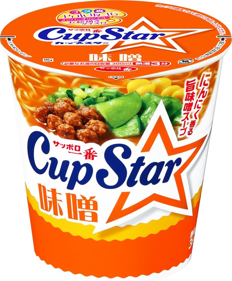 サッポロ一番ブランドのカップスター味噌は、コクのある味噌スープが特長のカップラーメン。味噌の旨みと香りが広がるスープに、食べやすい麺と具材を合わせたバランスのよい味わいです。お湯を注いで手軽に食べられるため、ランチや軽食、忙しい日の食事にも便利です。
