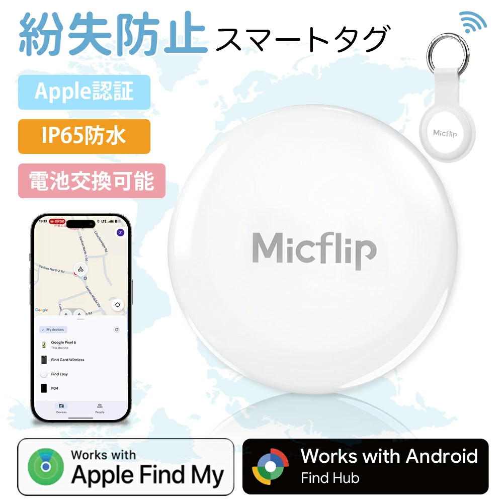 Appleの「探す」やAndroidに対応した紛失防止用スマートタグ。MFi認証取得済みで安心して使用でき、鍵や財布、バッグなどに取り付けて位置確認が可能です。音を鳴らして探せる機能や忘れ物防止アラートに対応し、日常の紛失対策に便利。防水仕様で屋外でも使いやすく、子供やペットの見守り、車の管理など幅広いシーンで活用できる実用的なアイテムです。