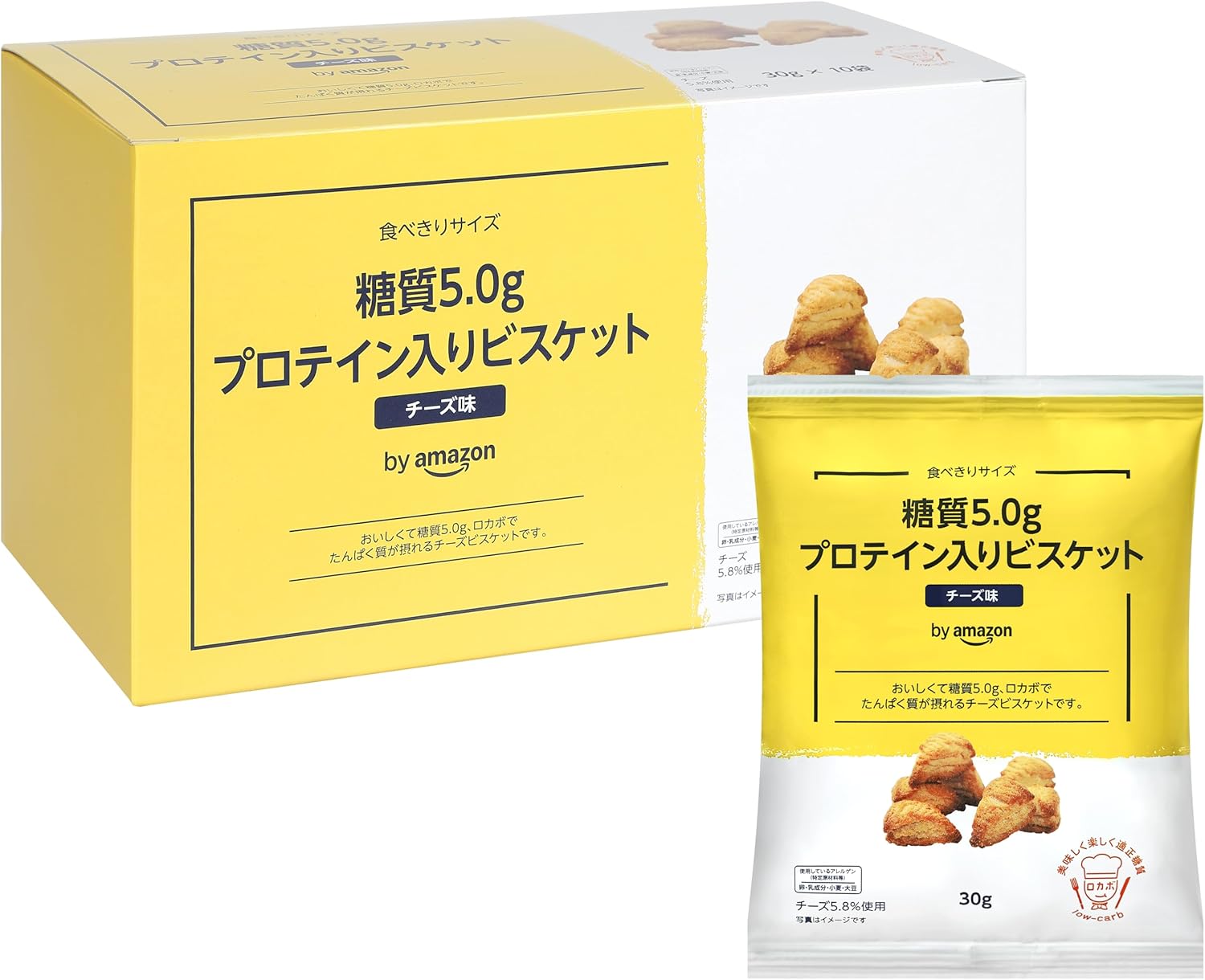 by Amazon ロカボビスケット チーズ味 30g×10袋 プロテイン入り